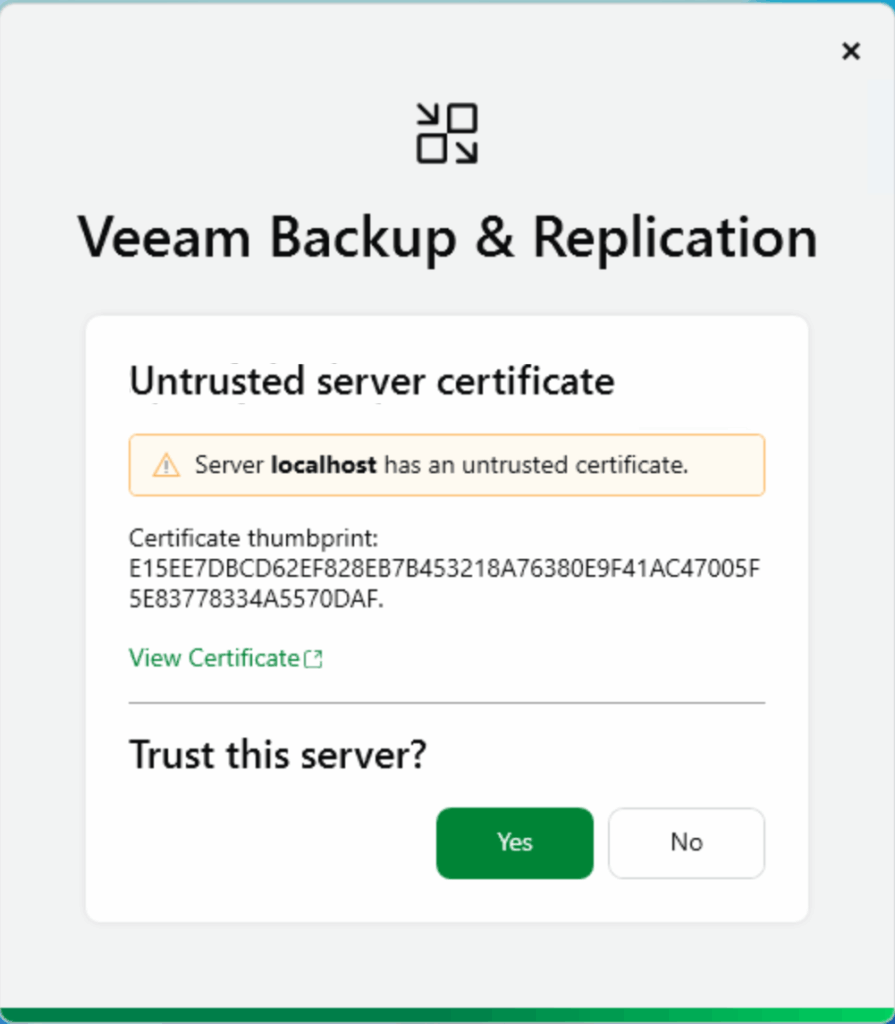 Nach dem Upgrade folgt die erste Anmeldung. Schon hier gibt es die ersten Änderungen zu sehen. Bei der Anmeldung wird jetzt das Zertifikat des Backupservers überprüft.